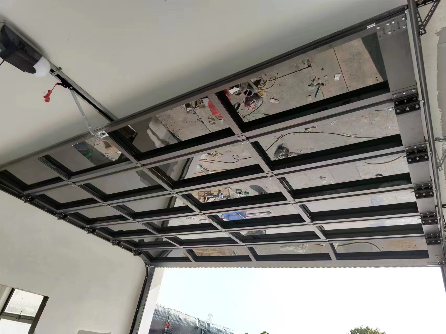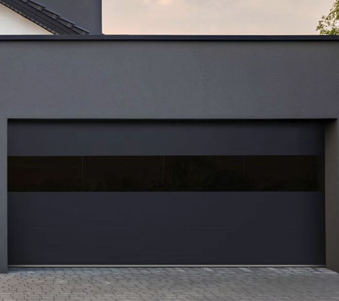 An extra-large garage door that uses frameless glass door technology (pursuing ultimate transparency.The reinforced large back reinforcement design of the door ensures that the large perspective door canoperate smoothly during lifting and flipping, without deformation, and is durable.