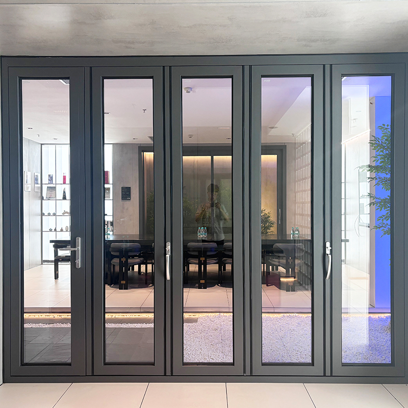 A folding door is a door that consists of multiple door leaves, connected by hinges or hinges and can be folded and retracted. Its main features are space saving, flexible space separation, and beautiful and practical appearance. It is often used in small apartments such as bathrooms, kitchens, balconies, or places that require a large open area.